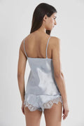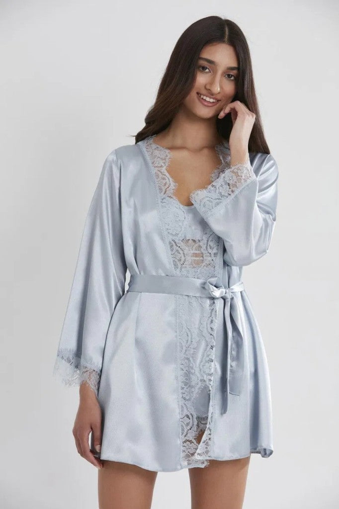 Romantik detaylarla bezenmiş, zarif saten dokusuyla teninizde ipeksi bir his bırakan bu 3'lü takım; şort, dantelli kombin ve sabahlıktan oluşur. Şıklık ve rahatlığı bir arada sunan bu set, özel gecelerinizde kendinizi daha özel hissetmeniz için tasarlandı.