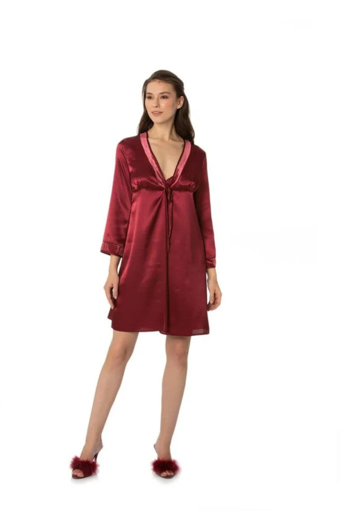 Saten Dantelli Kadın Gecelik ve Sabahlık Takımı
