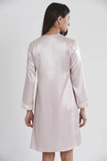 Saten Dantelli Kadın Gecelik ve Sabahlık Takımı, lüks ve zarafeti bir arada sunan özel bir tasarımdır. Yumuşak dokulu saten kumaşı, cilde ipeksi bir temas sağlar ve hafif yapısıyla gece boyunca konfor sunar. Göğüs ve etek kısmındaki zarif dantel işlemeler, takıma romantik bir hava katar.