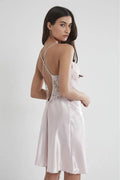 Saten Dantelli Kadın Gecelik ve Sabahlık Takımı, lüks ve zarafeti bir arada sunan özel bir tasarımdır. Yumuşak dokulu saten kumaşı, cilde ipeksi bir temas sağlar ve hafif yapısıyla gece boyunca konfor sunar. Göğüs ve etek kısmındaki zarif dantel işlemeler, takıma romantik bir hava katar.