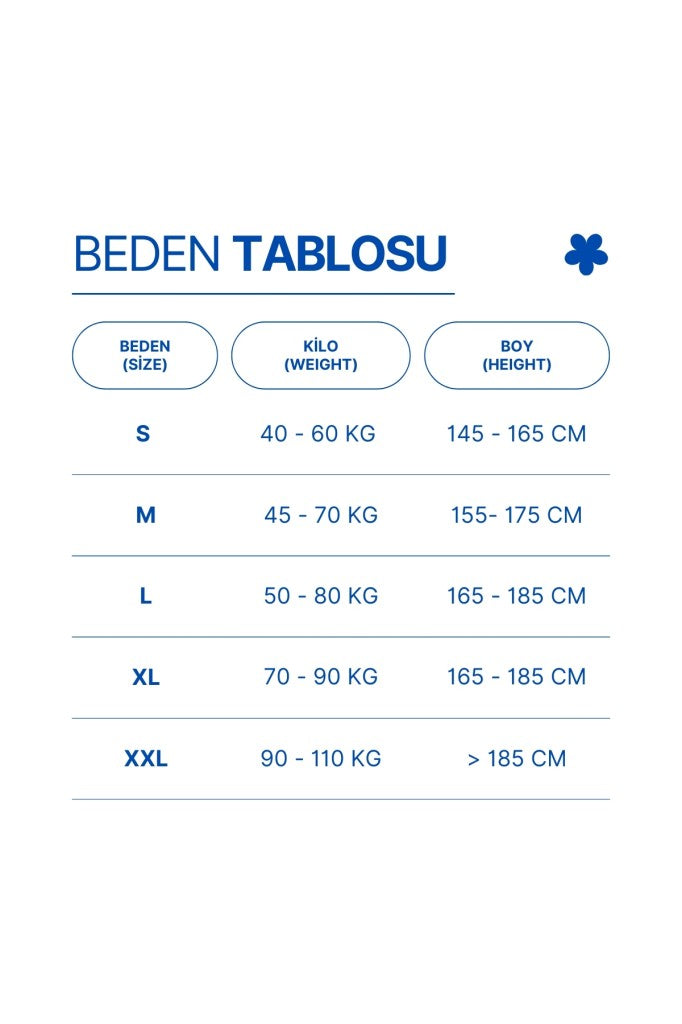 Ürün, S, M, L, XL ve XXL bedenleriyle müşterilere sunulmaktadır. Bu sayede, her bedene uygun bir seçenek sunarak müşteri memnuniyetini en üst düzeye çıkarmaktadır.