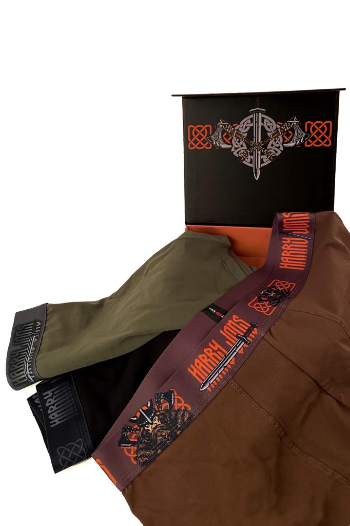 Harry Jons Viking Premium Kutulu 3 Adet Erkek Boxer Hediyelik Kutu, tarz sahibi erkekler için özel olarak tasarlanmıştır. %95 pamuk ve %5 elastan karışımı, kutuda bulunan siyah, kahverengi ve yeşil renkteki boxerların rahat ve esnek bir kullanım sağlamasını sağlar. Kutu, hediye paketi olarak sunulduğundan, sevdiklerinize özel günlerinde de hediye edebilirsiniz.